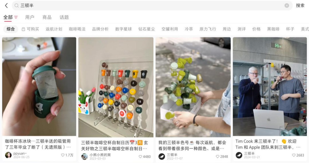 三頓半作為咖啡領(lǐng)域的創(chuàng)新先鋒,其憑借獨(dú)特的小罐咖啡形式,曾在小紅書上掀起了一股咖啡熱潮。眾多美食和飲料主播使用三頓半推出各種創(chuàng)意的咖啡沖泡教程和咖啡與美食搭配的內(nèi)容,如咖啡拿鐵、摩卡星冰樂(lè)等,為用戶展示了咖啡的無(wú)限可能性。消費(fèi)者也積極響應(yīng),在小紅書上分享自己獨(dú)特的“三頓半空罐創(chuàng)意玩法”,將空罐制作成各種精美的手工飾品,展現(xiàn)了他們對(duì)生活的小巧思和對(duì)品牌的熱愛。此外,三頓半還精心策劃了豐富的營(yíng)銷活動(dòng),例如“返航計(jì)劃”,該活動(dòng)鼓勵(lì)用戶收集咖啡空罐,并前往指定地點(diǎn)兌換周邊產(chǎn)品或參與線下活動(dòng)。這不僅有效提高了用戶的參與感,還極大地增強(qiáng)了品牌忠誠(chéng)度。